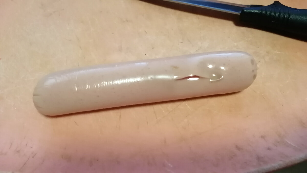 Купила сосиски продавленные, мягкие. Сделала надрез в них. Расскажу, что там я увидела внутри