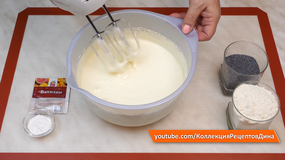 Привет, друзья! С вами Дина и канал "Коллекция Рецептов"! Каждый раз, составляя праздничное меню, мы задумываемся о том, что бы такого приготовить на десерт, особенно для большой компании, но при этом хочется обойтись без раскатывания коржей! Хочу предложить вам рецепт бесподобно вкусного и очень нежного сливочно-кокосового десерта под названием "Райское наслаждение"! Этот вкуснейший десерт станет не только шикарным завершением праздничного застолья, но и порадует вас и ваших гостей потрясающим сливочным вкусом, приятным кокосовым ароматом и мягкой, буквально тающей во рту консистенцией! Пошаговый рецепт: Для начала приготовим тесто для макового бисквита. В чашу вливаем 4 яйца и всыпаем стакан сахара или сахарной пудры - у меня стакан объемом 250 мл, все хорошо взбиваем до появления пышной воздушной массы. Затем добавляем полстакана мака, просеиваем 1 стакан муки с 10 г разрыхлителя и всыпаем ванилин или ванильный сахар. На самых малых оборотах миксера замешиваем нежное тесто, как толь