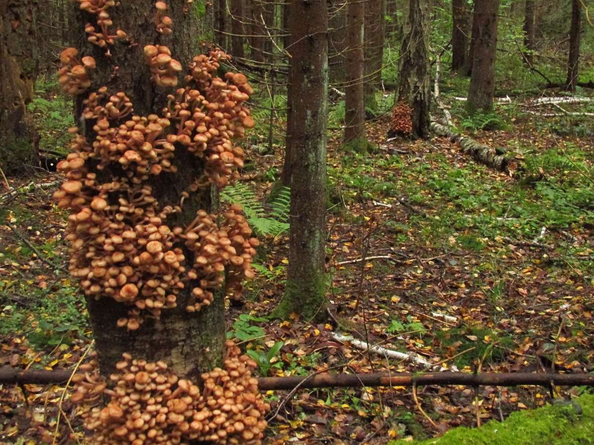 Вот и той осенью, в сентябре, как раз опята пошли, решили мы со свахой за грибочками "сбегать" пока банька топиться. У меня тогда младшенькому сыну, девять месяцев было, покормила, в кроватку спать уложила, дома муж со сватом и старшие дети остались. Взяли по ведерку и пошли, только сваха решила мне показать новые места, собирала там грибы, да и места эти она лучше меня знает. Мы только три года, как в дом переехали, ну знает, так знает, пошла куда повели. За нами щенок увязался, маленький, три месяца всего, бежит и бежит, сколько не пыталась домой вернуть, он ни в какую! Аж скулить начал, так хотел с нами в лес, пришлось взять, время то идет, надо еще до места дойти и грибов набрать.