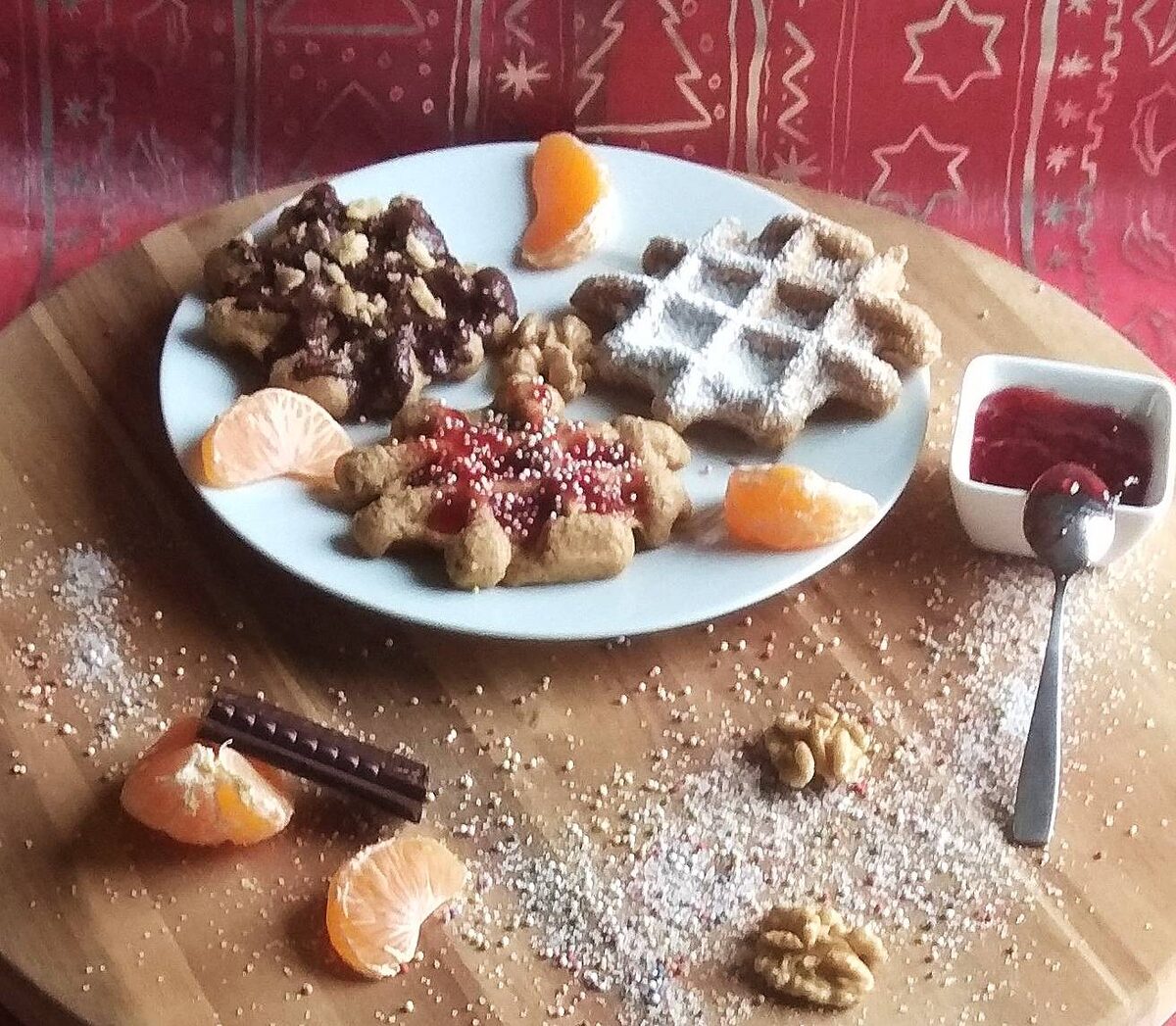 Вафли бесподобные!!! Ароматные и вкусные. Украшены шоколадом с орехами, вареньем с цветной крошкой и сахарной пудрой. Дети в восторге! Очень красиво смотрятся на праздничном столе. #новыйгод #десерт Ингредиенты: лимон, сахара, соли, ванильного сахара, воды, кокосового масла или сливочного масла комнатной темпер, соды, яйца, муки Способ приготовления: На терке натереть желтую кожицу лимона. Положить в глубокую миску. Добавить все ингредиенты кроме. И хорошо перемешать миксером до однородной массы. Воду добавлять постепенно. Масса должна быть похожа на крем. Если жидко добавить муки. Если густо добавить воды. Выпекать вафли и затем украсить.