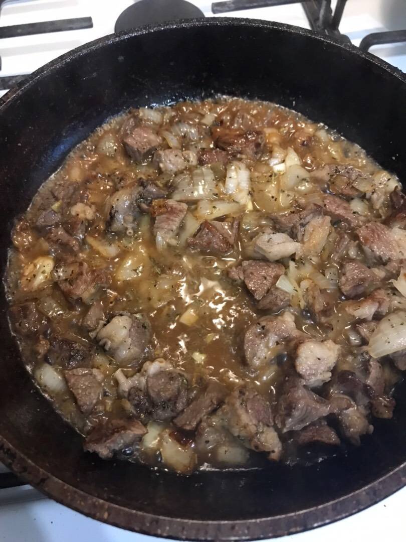 Блюдо можно использовать с любым гарниром-очень вкусно. Ингредиенты: Баранина, Лук, Специи для баранины (или чабер, мята, кориандр), Соль, перец молотый, Растительное масло Способ приготовления: На растительном масле слегка обжарить кусочки баранины. Добавить репчатый лук и обжарить до золотистости лука. Затем посыпать перцем и специями для баранины (или взять чабер и мяту), посолить. Если есть рассол, то закрыть крышкой и на медленном огне тушить 30 минут. Если нет рассола-налейте 0,5-1 ст. горячей воды и потушите. Мясо получается мягким и хорошо подойдёт к картофельному пюре, гречке или макаронам.