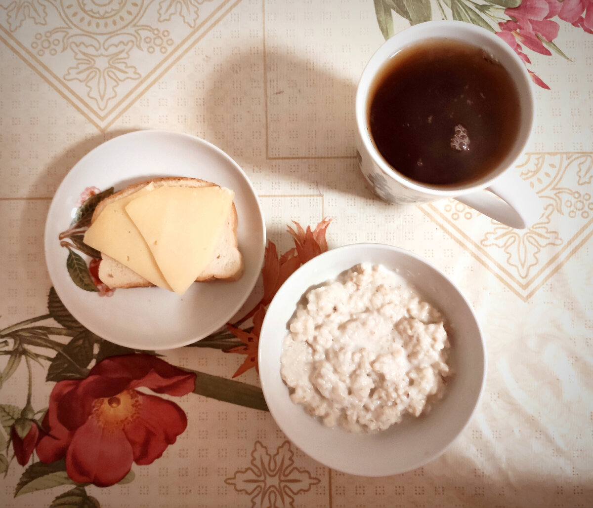 Всех приветствую!!! Вот и прошёл второй день выработки привычки правильно питаться. Конечно этот день прошёл не так как надо. Сегодня ездила в город,надо было к врачу, а потом прогулялись по магазинам и в итоге наела чего нельзя было. Это наверное из-за того, что у меня за две недели вес уменьшился на 600гр )))) и я начала объедаться на радостях))) И так начнём моё меню: Завтрак: - молочная овсяная каша; - бутерброд с сыром; - черный чай. Так как я во время обеда находилась в городе, мне пришлось пообедать в столовой,но перед обедом у меня был съеден кусок пиццы с чаем. Обед: - куриная лапша; - картофельное пюре с котлетой; - винегрет; - черный хлеб. Далее я приехала домой, времени приготовить ужин было мало, поэтому на ужин на скорую руку. Ужин: - макароны; - сосиска (потом ещё одну подложила); - овощной салат. Ох, если бы всё на этом и закончилось,то было бы отлично. Так меня разнесло дальше... Ещё после ужина мной было съедино: - лаваш с колбасой; - лаваш с ветчиной; - бисквитный