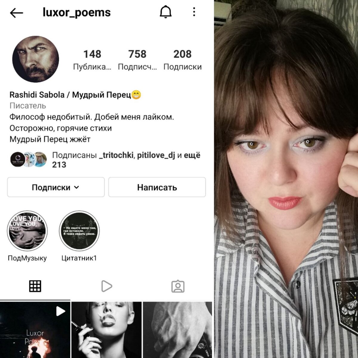 Мудрый перец. Вы можете представить, что однажды мне вновь стало мало? Конечно, можете. Мне захотелось проверить эффективность моих сочинений и я решила создать страницу инкогнито, ещё и от лица противоположного пола. Авантюру я считаю успешной. Мой вымышленный Рашиди Сабола, дословный перевод – Мудрый Перец, уроженец солнечного Луксора (чёрт меня знает почему именно так, придумалось) занял место среди поэтов и производил на женщин впечатление. Даже стало неудобно, но крайне увлекательно. Вот тут надо сказать, что совесть заставила признаться в подлоге. Было разочарование среди поклонниц, кто-то отписался. Хотела бросить, но есть стихи которые под женским амплуа не смотрятся, поэтому иногда пишу от имени моего мужика. И такое бывает, думаю, не редкость. Но всё, что было в инстаграм ушло, потерялся интерес. Остались стихи этого периода, стихов много, они очень разные. Спасибо за вдохновение той сети, двигаемся дальше!