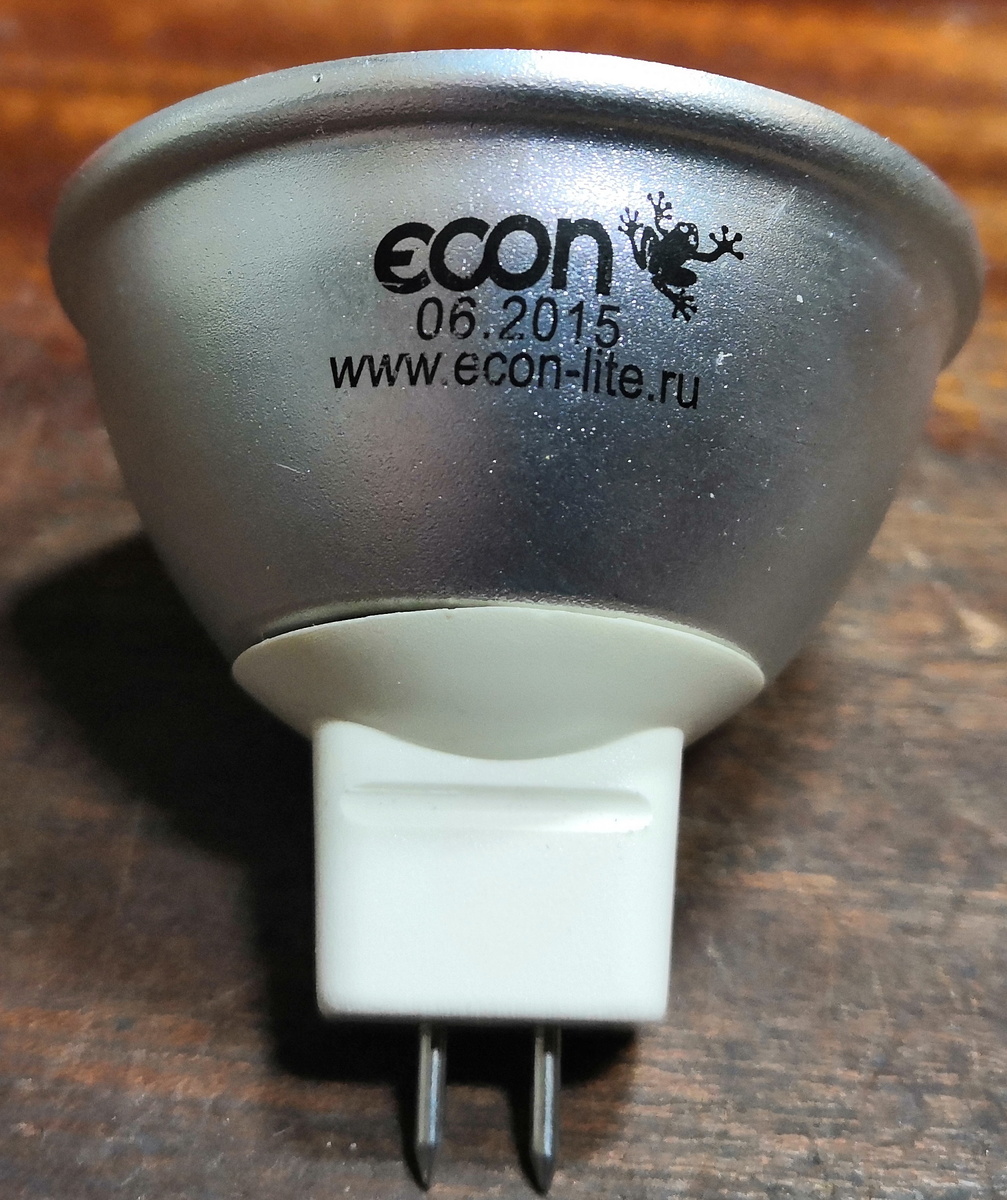 Данная лампочка последние полгода моргала перед тем как начать гореть, но потом и моргать перестала и соответственно гореть. Я не стал задумываться что там и как, просто купил комплект из четырех ламп с таким же цоколем (GU 5.3) и просто поменял на кухне все четыре лампочки дабы светили все одинаково. Но был интерес, насколько качественно исполнены данные лампочки и что там внутри в качестве драйвера светодиодов, полноценный драйвер на микросхеме и трансформаторе или дешманская схемка на конденсаторах, диодах и резисторах. Ну и собственно хотелось разобраться в причине неисправности данной лампочки и возможно ли ее починить. Вскрылась лампочка довольно таки легко, обычным канцелярским ножом с выдвижным лезвием. Даже стеклянный (а он на удивление стеклянный а не пластиковый) рассеиватель не поломался. Можно было бы собрать всё это дело обратно. Но собирать у меня задачи не было. Было не очень приятно что производитель после пайки проводов не убрал флюс с платы. Вроде бы ерунда но впеча