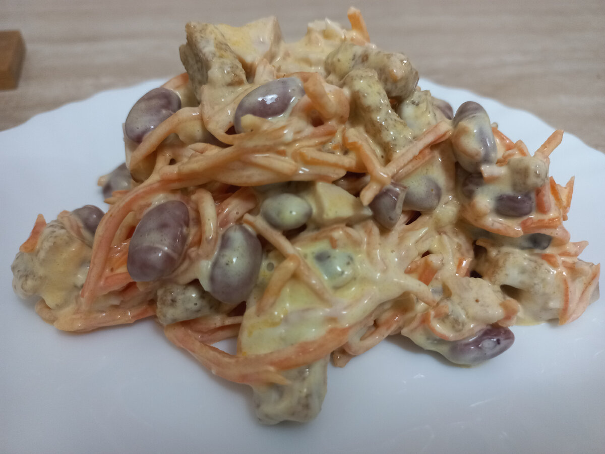 5. Заправить салат майонезом и все аккуратно перемешать.