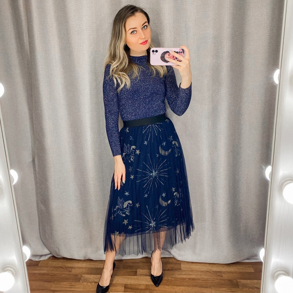 Юбка с космической вышивкой, невероятно красивая, оригинальная и нарядная. Подойдёт на осень, зиму, весну. Заказывала на AliExpress в магазине Retro Stars Store.