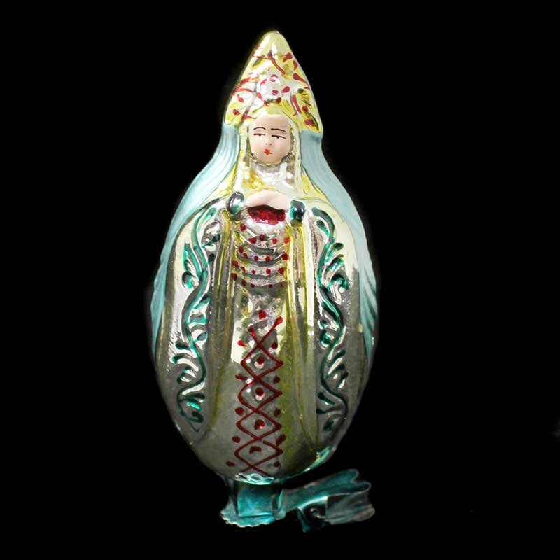 Место шаров в Советское время все чаще занимали различные фигурки фруктов, овощей, людей и животных. Отечественные игрушки этим и выделялись на фоне европейских, так как за границе чаще всего использовались лишь однотонные, иногда разноцветные шары. Когда в нашей стране, советские елки были украшены практически всегда фигурками. Наверное, у каждого была елочная игрушка «Иван Царевич» СССР. Но многие активно охотились еще и за такой елочной игрушкой как «Царевна» СССР.