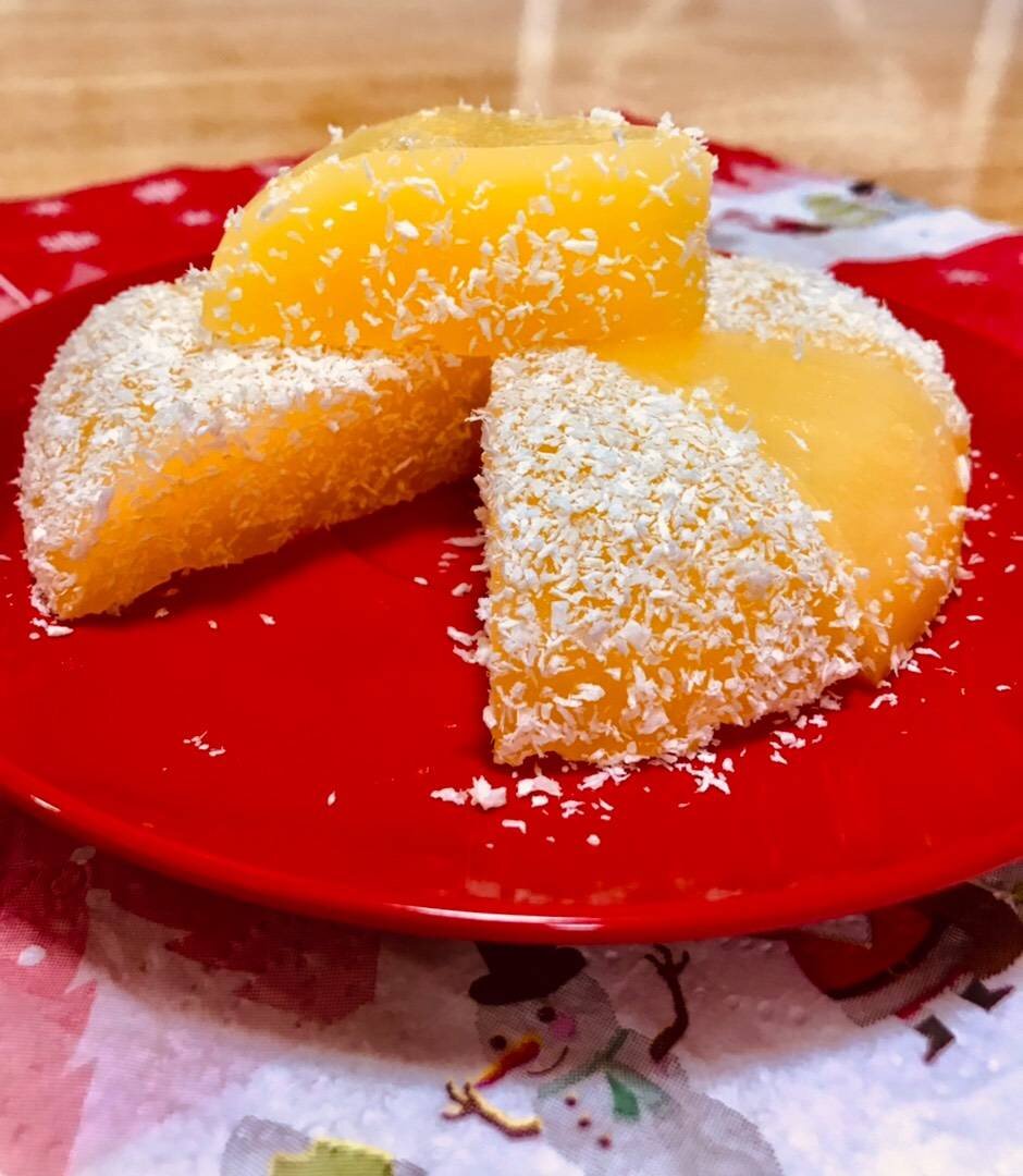 #новыйгод Супербыстрый десерт, который готовится из 3-х ингредиентов, а украсить можете его на своё усмотрение, я взяла кокосовую стружку, она идеально подходит для этого рецепта. Если у вас сок кисловатый, можете добавить чуть больше сахара. Попробуйте, не пожалеете 😋 Ингредиенты: свежевыжатого апельсинового сока, сахара, кукурузного крахмала, Кокосовая стружка для обсыпки (по желанию) Способ приготовления: Подготовить ингредиенты. Из апельсинов выжать сок (у меня ручная для цитрусовых). Готовый сок процедить (из двух больших апельсинов у меня получилось 250 гр сока). В сотейник насыпать сахар и кукурузный крахмал. К крахмалу с сахаром добавить апельсиновый сок, перемешать. Сотейник поставить на средний огонь. Варить до загустения постоянно помешивая около 3-4 минут. Форму для десерта смазать капелькой растительного масла без запаха (у меня из виноградных косточек). Вылить готовое желе в форму. Остудить при комнатной температуре. Затем отправить в холодильник на 3-4 часа. Остывшее же