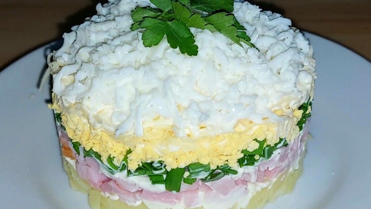 Добрый день уважаемые подписчики и гости нашего канала! Кто еще не подписался, рекомендую подписаться, у нас очень много простых и вкусных рецептов, думаю они Вам понравятся! Сегодня я готовила салат и решила поделиться с Вами, может кому-то пригодится. Салат простой, но получается очень вкусно. Для приготовления мне понадобилось: Рецепт для формы диаметром 11 см: Картофель - 1 средняя Балык или буженина - 100 г. Яйца - 2 шт. Сыр твердый - 80 г. Зеленый лук - 10 г. Майонез - 100 г. Картофель отварной в мундире, чистим и натераем на крупной тёрке. Яйца разделяем на белки и желтки и отдельно натераем на средней терке. На форму диаметром 11 см., мне понадобилось всего 2 яйца, в видео я приготовила 3 шт., ноиспользовала всего 2 штуки. Балык нарезаем мелким кубиком.( можно любое отварное мясо или копченую курочку) Сыр трем на средней терке. Зеленый лук нарезаем мелко. Кольцо для салата ставим на блюдо и сбираем салат: 1 слой - картофель+ смазать майонезом 2 слой - Балык + майонез