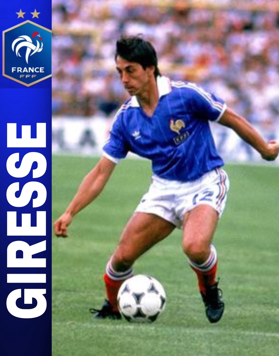 Ален Жиресс – замечательный французский футболист, полузащитник, проявивший в клубе «Бордо» также и бомбардирские качества. Жиресс занимает второе место по числу матчей в чемпионате Франции за всю историю турнира - 586 игр, он лучший бомбардир клуба «Бордо» - 179 голов. В составе сборной Франции Жиресс выступал с 1974 по 1986 годы, провёл 47 матчей, забил 6 мячей. Мне довелось увидеть Жиресса впервые на ЧМ - 1982. Сборная Франции, начав с поражения от Англии в первом матче, затем показала великолепный, яркий футбол. Я видел матч, где французы уверенно раскатали крепкую сборную Северной Ирландии, забив 4 красивых мяча, два Жиресс, а пропустили лишь один. А затем был полуфинал со сборной ФРГ. Безусловно, самый яркий и драматичный матч ЧМ-1982, многие считают, что и один из ярчайших матчей за всю историю чемпионатов мира. Матч, как известно, завершился 1:1 в основное время и 3:3 в дополнительное, а затем был выигран немцами в серии пенальти. Но игра, которую показали французы с их блес