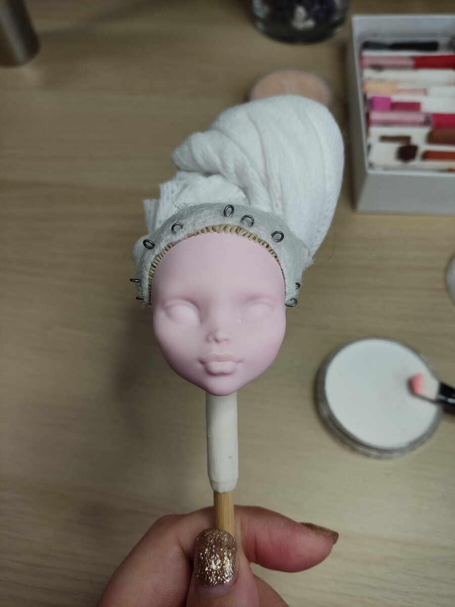 Всем привет! Меня зовут Александра, и я увлекаюсь преображением (ООАКом) кукол Monster High и Ever After High. Я продолжаю работу по переделке Элизабет Монстер Хай в принцессу Серенити из анимэ про Сейлормун. Причёска Серенити частично готова, но полностью ее доделаю уже после росписи лица, чтобы не испортить. Тело куклы имеет достаточно яркий розовый цвет, поэтому буду его осветлять и превращать в человеческий с помощью панпастели. Молд глаз имеет очень чёткие очертания век - рисовать по такому молдированному глазу одно удовольствие. Но, прежде чем рассказывать про этапы росписи, покажу и расскажу, какое лицо я собиралась рисовать. Это принцесса Серенити. У неё синие большие глаза, такие, как любят рисовать в аниме. И маленький рот. Но заказчица Ирина захотела, чтобы куколка была нарисована в другом стиле. Для ориентира она мне прислала несколько картинок мастера Светланы Барышевой. Я давно наблюдаю работы этого мастера. У её кукол очень интересная необычная рисовка глаз. Зрачо