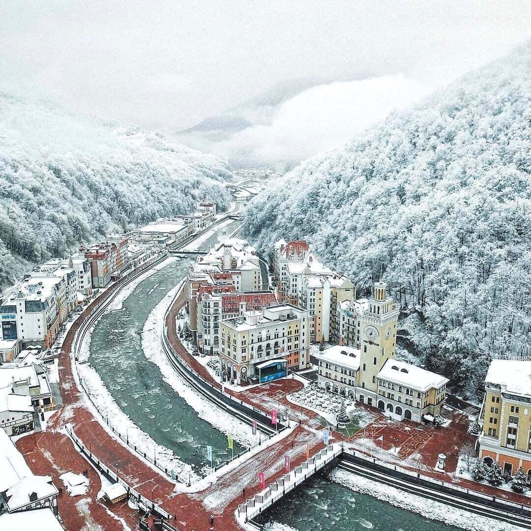 Сегодня хотелось бы написать про ещё одно замечательное место Краснодарского края -это небольшой курортный посёлок Красная Поляна. Если вы отдыхаете в городе - курорте Сочи, обязательно рекомендую посетить горнолыжный курорт, всего полтора часа на машине, либо пару часов на электричке и вы на месте. Ещё утром вы ходите по пляжу среди пальм и греетесь на солнышке, а в полдень гуляете по заснеженным склонам. Посёлок окружён со всех сторон горами, расположен в 36 км от Черного побережья и на высоте около 500 метров над уровнем моря. После поведения Олимпийский игр курорт снова оживился. В зимний сезон он очень популярный не только для Российских туристов, но и для приезжих с других стран. На территории посёлка имеется 3 горнолыжных подъёмника. Горнолыжный комплекс Роза Хутор включает в себя 32 современных подъемника, позволяющим гостям кататься на 105 км трасс, расположенных на северном и южном склонах хребта Аибга. Самой длинной трассой в комплексе - является "Панорама", протяжённостью