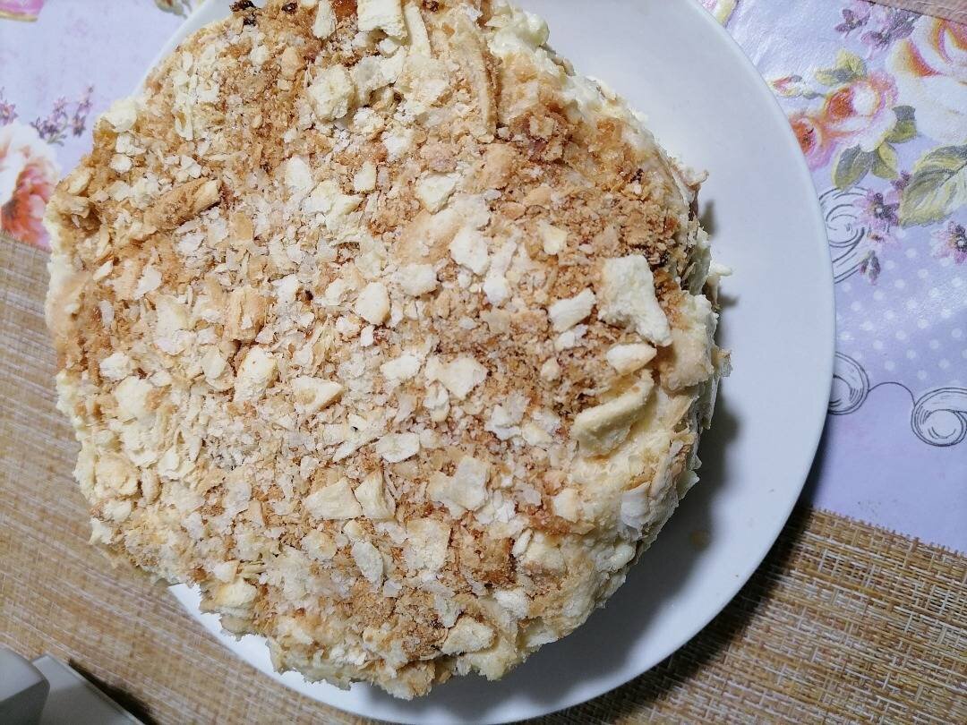 Любимый десерт в простом исполнении. Ингредиенты: Печенье ушки , Молоко , Масло сливочное , Сахар, мука, яйцо, ванильный сахар Способ приготовления: Яйца разбить, отправить в кастрюлю. Налить в кастрюлю молоко, добавить муку и сахар, ванильный сахар. Взбить венчиком. Поставить на медленный огонь, постоянно помешивая. Как крем загустеет, снять с плиты, дать немного остыть, добавить масло. Перемешать. Взять разъёмную форму. Постелить пергамент. Каждую печеньку обмакнуть в крем с двух сторон. Выложить печенье слоями. Каждый слой дополнительно смазать кремом. Прижимать печенье друг к другу. Собираем торт, пока не закончится крем. Немного печенье оставляем и измельчаем в крошку для украшения. Оставляем торт в холодильнике на ночь. Приятного чаепития!