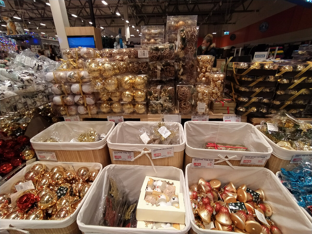Огромный выбор пластиковых игрушек. Я их терпеть ненавижу, но понимаю, что для семей с маленькими детьми и излишне любопытными кошками это единственная возможность встретить Новый год с наряженной ёлкой.