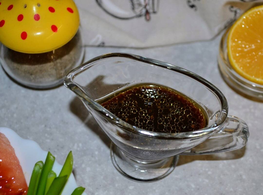 Быстрый соус в азиатском стиле хорошо подходит к рыбе, рису, да и другим продуктам - овощам или мясу. Готовится считанные минуты, а вкус вас приятно удивит - яркий, сбалансированный и интересный! #новыйгод Ингредиенты: Соевый соус , Горчица (русская) , Кунжутное масло , Мед (светлый) , Лимон (небольшой) Способ приготовления: Если мёд густой подогреть его чуть-чуть в микроволновке. Выжать сок лимона. Смешать соевый соус и мед, до растворения меда, добавить сок лимона. Добавить горчицу и масло, и ещё раз тщательно перемешать ложечкой. Дать постоять минут 5. Перелить в соусник или полить готовое блюдо. Все готово - можно подавать и пробовать! Приятного аппетита!