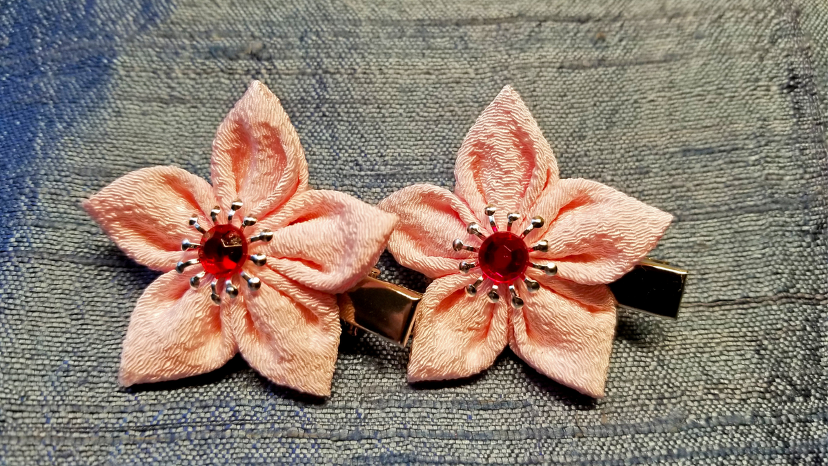 Вычитала о древнем женском искусстве в Японии - Канзаши. Пробуем использовать его сейчас.
