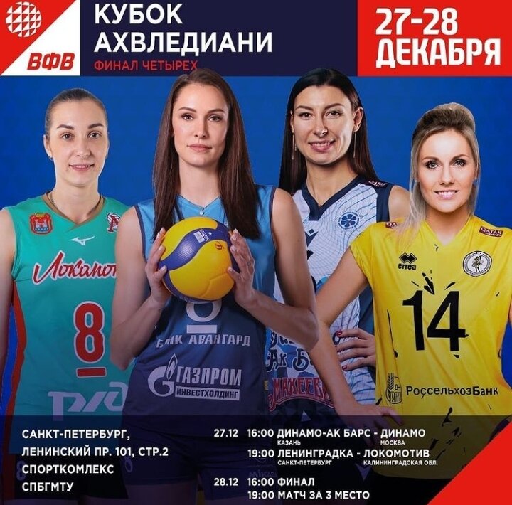 В понедельник и вторник в Санкт-Петербурге пройдёт «Финал четырёх» 29-го розыгрыша Кубка России по волейболу среди женских клубных команд. В полуфиналах 27-го числа, а также в матче за 3-е место и в финале 28-го сойдутся хозяйки площадки из «Ленинградки», а также команды «Динамо-Ак Барс» (Казань), «Динамо» (Москва) и «Локомотив» (Калининградская область).