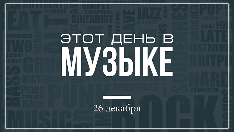 Музыкальную историю делали и делают артисты разных жанров и стилистических направлений. Это и безоговорочно признанные музыканты, и представители локальной сцены. В подборке указаны только некоторые из них. Так как рассказать обо всех – невозможно. Артисты из этого списка выбраны по-нашему усмотрению вне зависимости от их вклада и влияния в музыкальную индустрию. 26 декабря 1939 года родился Фил Спектор — один из самых влиятельных продюсеров и разработчик концепции «стена звука». Сегодня 70-летний юбилей отмечает Пол Куинн — английский музыкант, гитарист, композитор и один из основателей группы Saxon. 26 декабря 1959 года родился Чак Мосли — американский музыкант, вокалист, гитарист, композитор и автор песен. Наиболее известен как фронтмен группы Faith No More с 1984 по 1988 год. Также был участником таких групп как: Cement, Chuck Mosley and VUA, Primitive Race. 26 декабря 1963 года родился Ларс Ульрих — американский музыкант, барабанщик и один из основателей группы Metallica. Сегодн