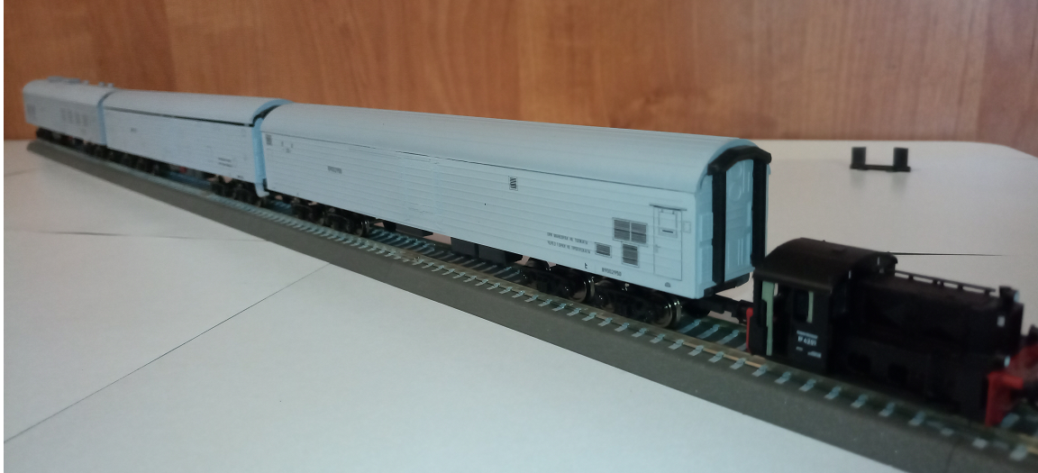 Указанной модели нет в личной коллекции, хотя я ее видел в московском "Семафоре", но она не вписывается в мою концепцию, да и на диорамах ставить ее некуда. Поэтому предлагаю авторский взгляд одного из наших читателей, купившего данную модель для личной коллекции. Итак, поехали. *** Недавно решил себя порадовать некоторым количеством отечественного подвижного состава в масштабе ТТ (1:120), выбор мой пал на модель БЖРК РТ-23 УТТХ «Молодец», производства компании «ТТ-Модель» (цена 17900 рублей на декабрь 2021 года). В комплекте поставляется три вагона без локомотива, два из которых имитируют командный пункт и вагон сопровождения, а один – непосредственно вагон с ядерной ракетой. Посмотрев модель в магазине с достаточно близкого расстояния, у меня не возникло вопросов о качестве, т.к. на расстоянии даже 40 сантиметров ты не видишь никаких проблем или недоработок, но после покупки данного набора и постановки ее на макет, становятся заметными неприятные моменты. Сразу скажу, что нарисованны