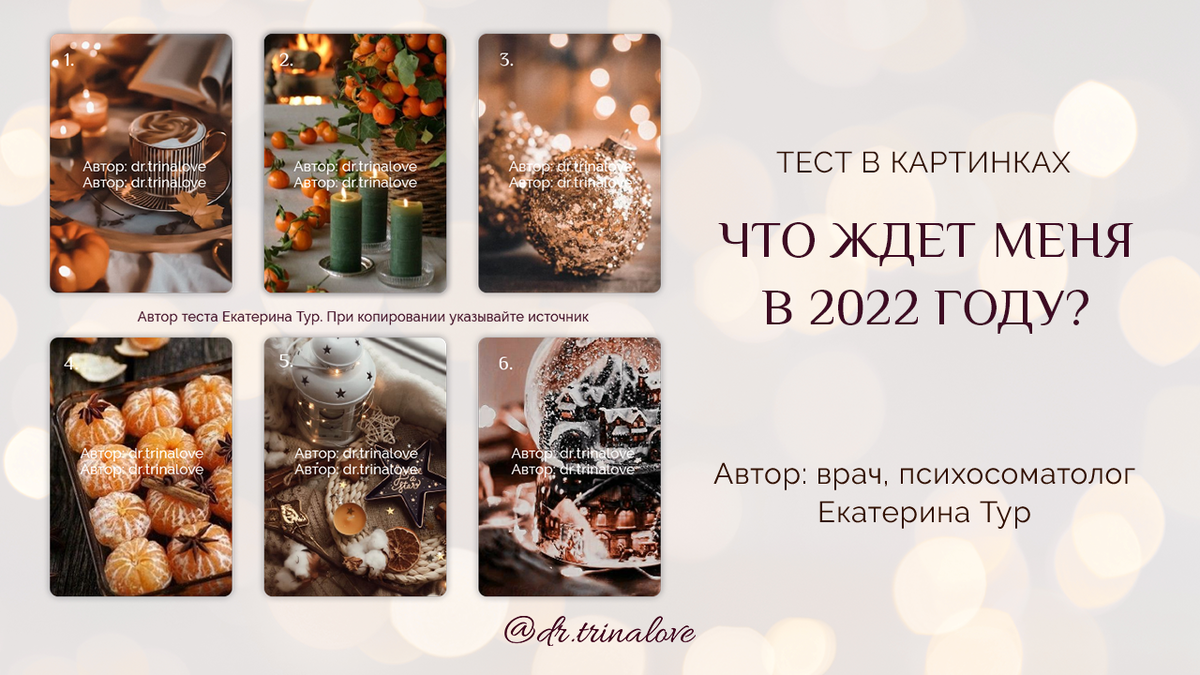 2022 год - это начало нового периода, который связан с многочисленными изменениями, в том числе в постепенной трансформации коллективного бессознательного. Новый Год станет периодом новых возможностей, и раскрытия новых перспектив. А что ждет вас в этот период? Авторский нейровизуальный тест уже на канале: Больше тестов в моем Инстаграме