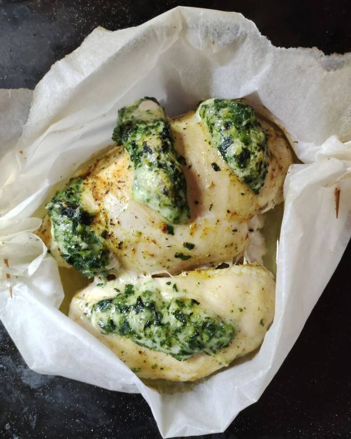 #святковеменю #гаряче Ингредиенты: Куриная грудка, Шпинат, Сыр твердый, Соль перец специи, Растительное масло Способ приготовления: Помыть грудку, посолить,поперчить, смазать маслом, сделать разрезы В разрезы положить шпинат(заранее разморозить и слить воду) и сыр (натереть на тёрке) Сделать такие лодочки с пергамента и выпекать 30 мин 180 градусов