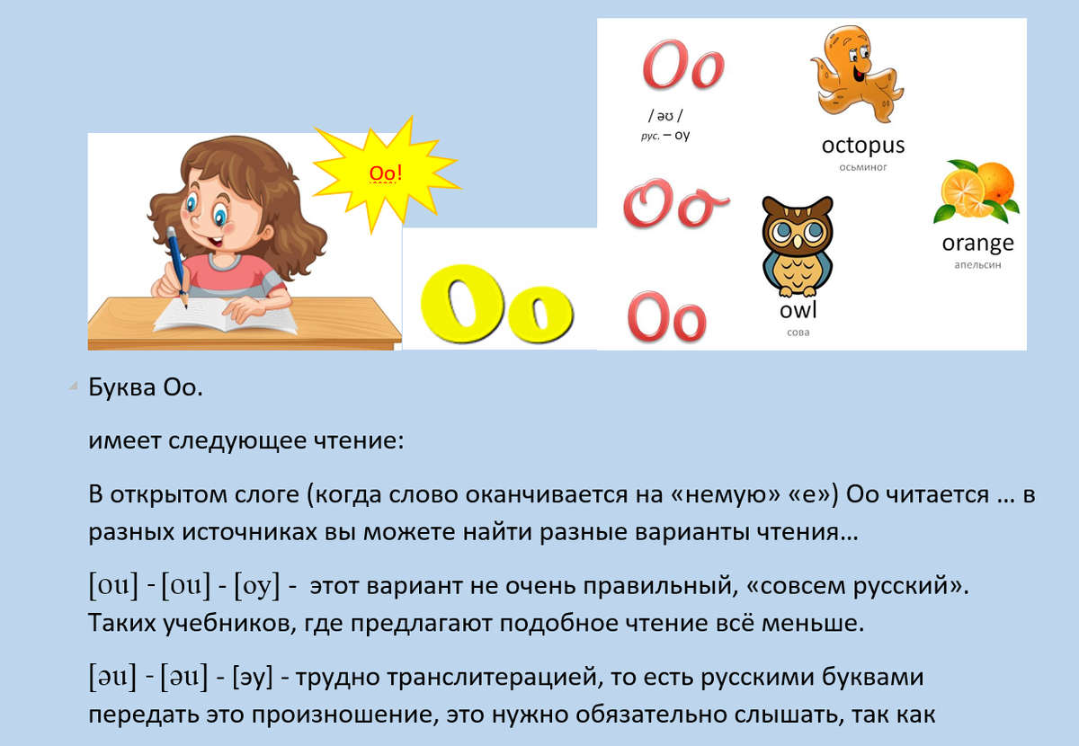 Урок 7. Буква А читается как О. Буква О читается как А. Взрослые, разберитесь сами, потом морочайте детям голову Когда ребенок во втором классе начинает изучать английский язык, представьте, какая задача ставится перед ним: только что освоил азы русского языка, а тут еще иностранный! И в иностранном языке буквы ведут себя странно! Один и тот же значок может читаться по-разному! Причем, правила - когда в одном положении читается так, а в другом вот так - не всегда срабатывают. А тут еще другие значки есть - транскрипционные. Это же отдельная наука! Но она неразрывно связана с понятием - английский язык. Сегодня мы познакомимся с чтением буквы Оо. Спасибо, что прочитали урок. Молодцы, что много узнали и у вас есть желание учить то, что называется English. Если вам было интересно, подписывайтесь на мой канал. И до скорых встреч!