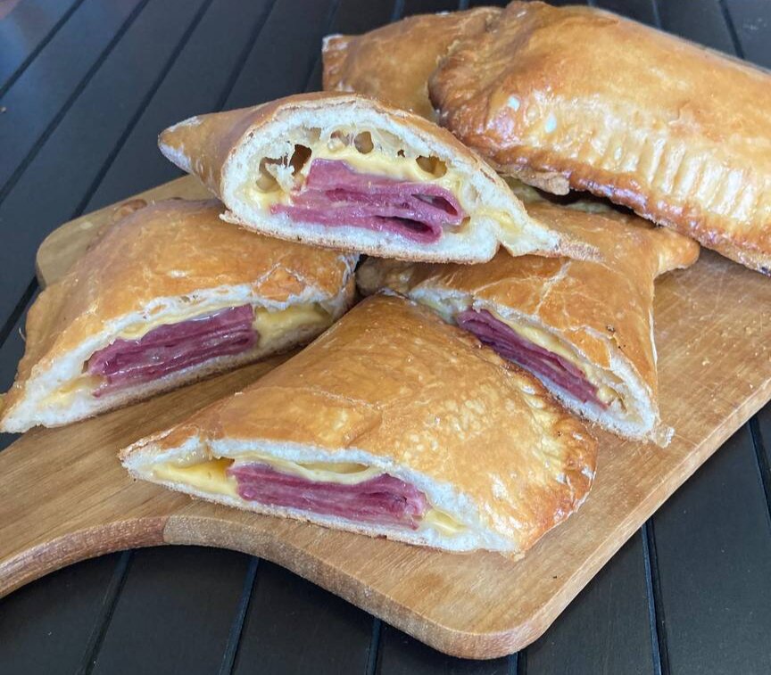 Когда после новогодних застолий на тарелках с нарезками останется сыр и колбаса, можете смело задействовать их, как начинку для аппетитных румяных слоек😊 Главное, что готовятся они просто, быстро и из того, что почти всегда есть дома. А разлетятся так же скоро, как бутербротды с красной икрой🤤🤤🤤 Нам понадобится: Сыр Колбаса или ветчина Тесто слоёное Мука Яйцо Рецепт: 🌺 Посыпаем стол мукой, с помощью скалки раскатываем лист слоёного теста и разрезаем его на 4 части 🌺 Выкладываем начинку из сыра и колбасы на одну сторону каждого квадрата теста 🌺 Накрываем начинку и защипляем края теста вилкой 🌺 На противень стелим пергамент и выкладываем слойки 🌺 Разбиваем яйцо, перемешиваем его в однородную массу и смазываем слойки 🌺 Выпекаем 15- 20 минут при температуре 200° Слойки готовы💫 Приятного аппетита💕💕💕
