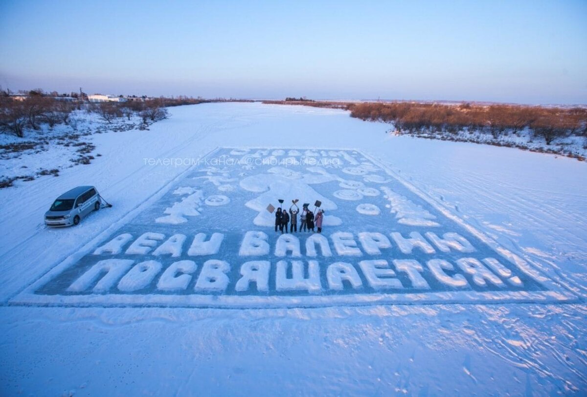 Жители нескольких регионов России рисуют на льду огромные новогодние открытки в честь автора идеи — художника из Амурской области, который в прошлом году умер от ковида. Даже 50 градусный мороз не помешал Якутянам продолжить традицию "Деда Валерия"