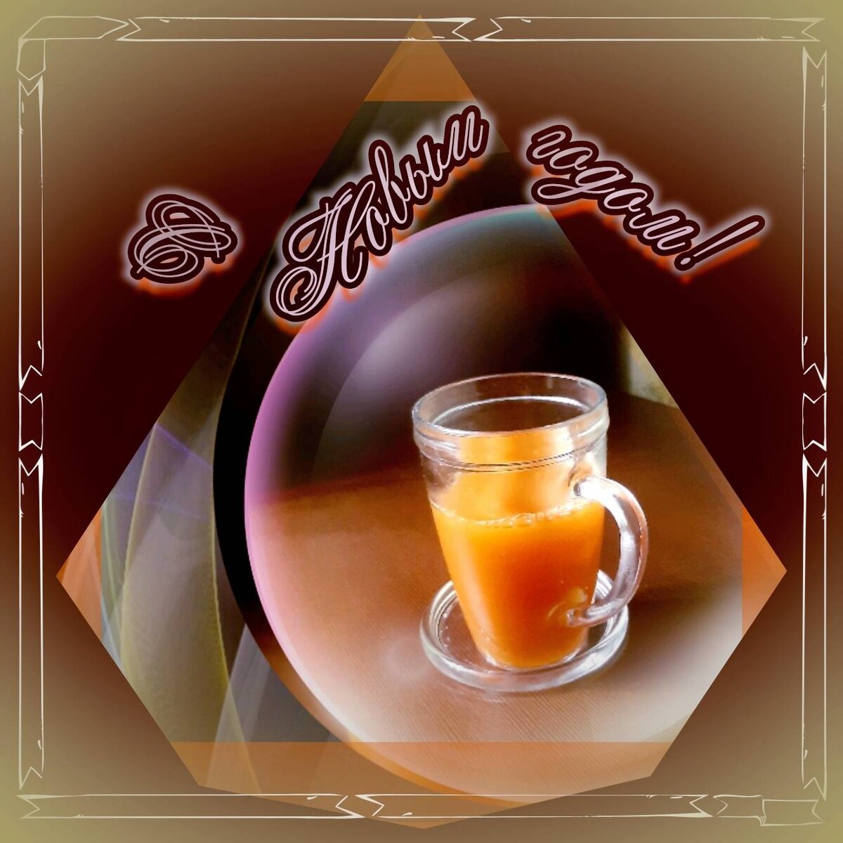 #новыйгод Ингредиенты: Зелёный чай с гравиолой, Сушёные лимон, апельсин и гранат, Палочка корицы, Морковный сок Способ приготовления: Заварить зелёный чай со всеми компонентами: сушёная измельченная кожура лимона, апельсина и граната. И положить палочку корицы. Настоять. Выжать сок из мелко натёртой моркови. В стеклянный стакан налить чай и добавить морковный сок. У меня сок занял 1/4 часть стакана. Сахар не добавляла.