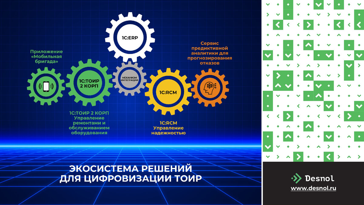 В своем рассказе об 1С:ТОИР 2 КОРП я уже говорил, что цель компании «Деснол Софт» — улучшить культуру принятия эффективных управленческих решений в бизнесе. И показывал, как эта цель влияет на разработку наших продуктов. Еще затрагивал тему «умных» механизмов, которые прячут сложность процессов и данных за простым фасадом. Эти же темы помогут лучше понять пользу и назначение второго по важности решения в экосистеме решений для цифровизации ТОиР — «1С:RCM Управление надежностью».