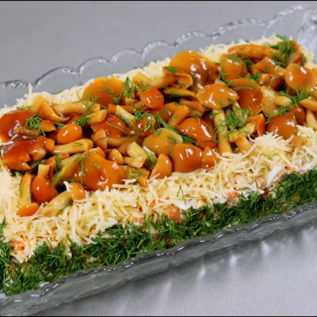 Очень вкусный и красивый салат на праздничный стол " Зимние опята". Такой шикарный и простой в приготовлении)