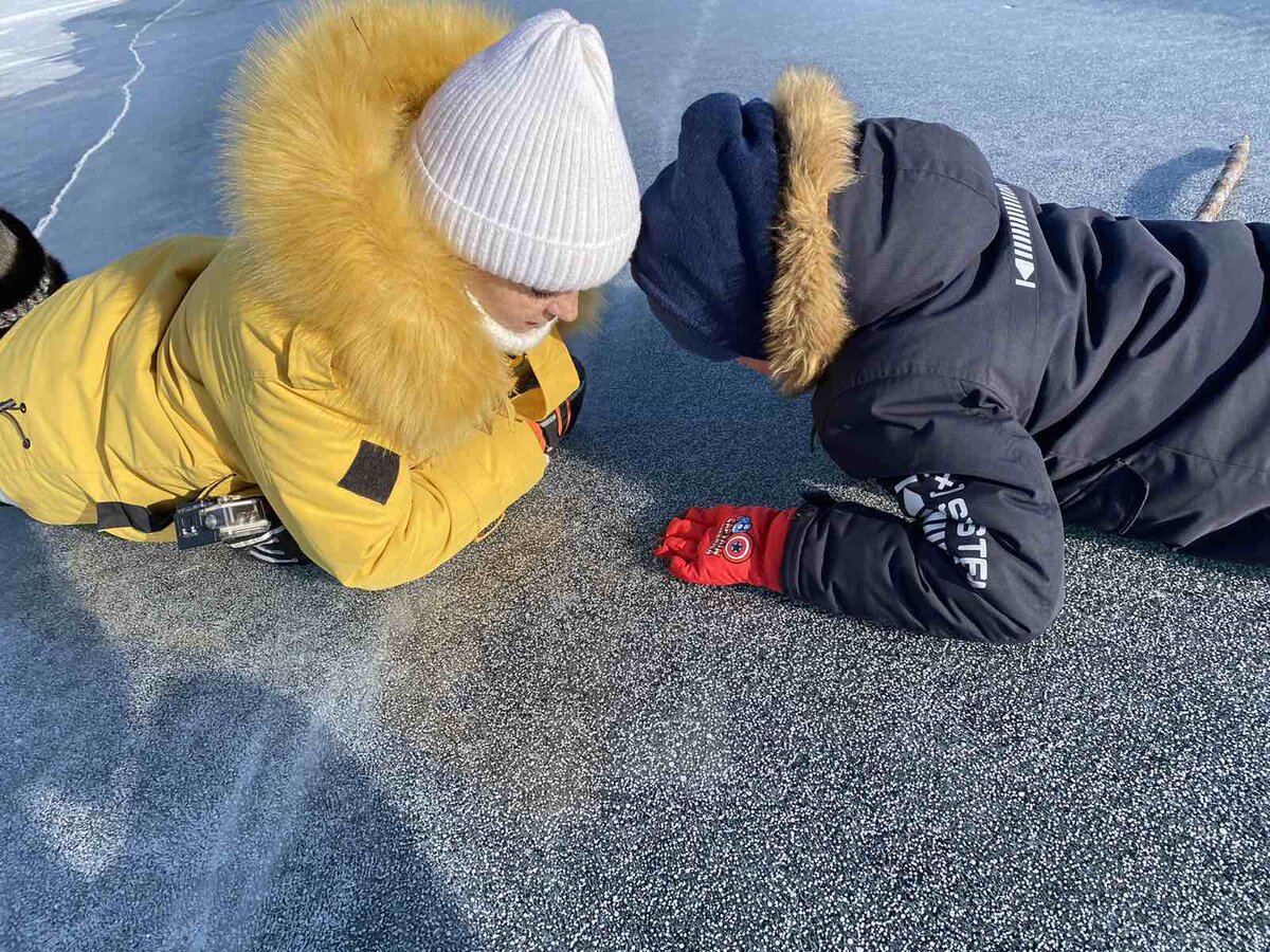 Лед Байкала давно уже, как магнитом притягивает к себе туристов со всего света. С середины декабря, когда начинается становления льда, и заливы полностью сковываются ледяной гладью, начинается странствия "диких" и организованных туристов в поисках космических пузырьков. Самое доступное место, где метановые пузырьки рассыпались, бусинами по зеркальной поверхности льда - это поселок Большое Голоустное. Лед в этом месте разнообразен своими узорами. Каждый метр - он другой. Метановые пузырьки, сменяются мелкими вкраплениями. Причудливые рисунки, переходят в трещины и так до бесконечности. С целью разглядеть каждый узор и камни на дне- придется поползать по льду ни один час.Да, да, именно ползать. Большинство туристов именно так и передвигаются, только ступив на Байкальский лед. Когда, мы в первые приехали в эту ледяную сказку, был январь месяц. Не самое подходящее время. #Байкал еще не встал полностью и издавал такие страшные звуки, что казалось: вот вот лед треснет под ногами.