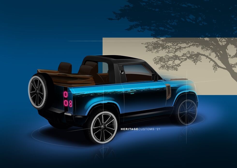 На данный момент британцы предлагает 3 и 5 дверный вариант знаменитого внедорожника. Но кому-то этого может быть мало, ведь в прошлом модель предлагала на выбор огромный перечень всевозможных вариаций заточены под разные задачи. Теперь же, в новом кузове появится ещё одна версия с мягкой складывающейся крышей для заднего ряда. Это заслуга принадлежит ателье Heritage Customs которая и разработала уникальный проект. О технических данных особого Defender ничего не сообщается. Но учитывая что парни не трогали переднюю часть, судя по всему проект может оснащаться любым из доступных внедорожнику на данный момент силовых агрегатов, в том числе и 5 литровый V8. Всего в компании планируют построить в следующем году пять таких кабриолетов, стоимость каждого составит 138,500 евро.