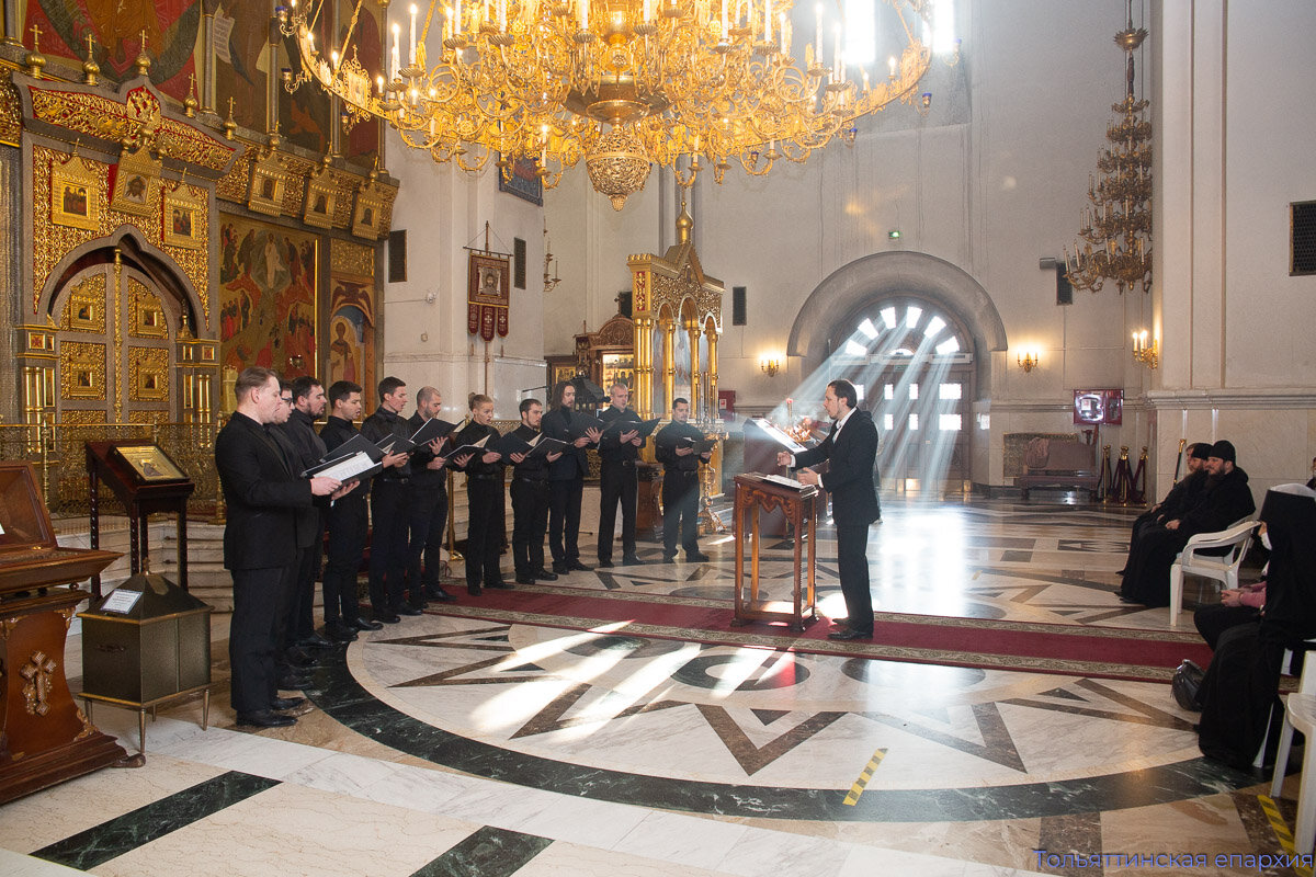 26 декабря 2021 года в Преображенском кафедральном соборе Тольятти состоялся духовный концерт архиерейского мужского хора Тольяттинской епархии – презентация первого альбома, посвящённого юбилейному 2022 году кафедрального собора – 20-летию его освящения.