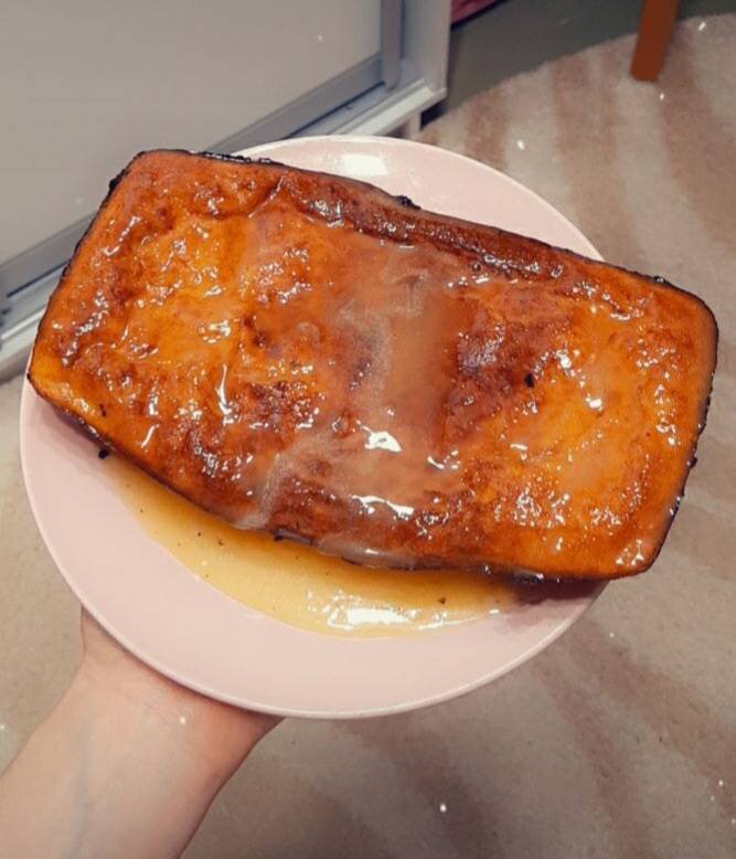 Ингредиенты: муки, тыквы, яйца, Имбирь, корица, ванилин, Сода, разрыхлитель, Сок одного мандарина, Мандариновая цедра, Для глазури:, Сахарная пудра, Мёд, Лимонный сок Способ приготовления: Для начала нужно подготовить тыкву. Я очистила от кожуры, нарезала на маленькие кусочки и тушила до очень мягкого состояния. Далее превратить тыкву в пюре, разбить яйца, хорошо смешать. Туда же имбирь и корицу. В отдельной миске просеять сухие ингредиенты, смешать с пюре. В массу выдавить сок мандарина и натереть цедру. Выпечь кекс до румяной корочки, но как только она появится, долго не держать его печься. Для глазури все смешать, полить готовый кекс. 🎃 Внутри он получается немного влажным, по структуре похожим на запеканку, от чего он безумно мне понравился.