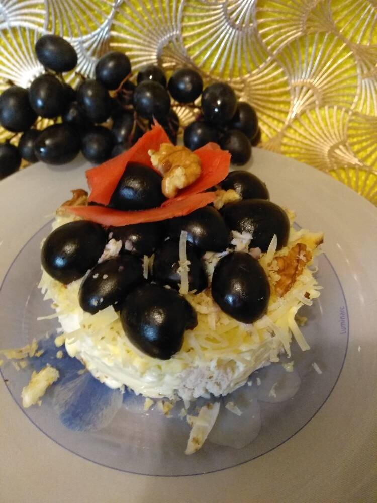 Лёгкий в приготовлении салатик на каждый день или на праздник 🎄 #новыйгод Ингредиенты: Куриной грудки, яйцо, Сыра твердых сортов, Майонез, Виноград, Грецкий орех, Соль и перец по желанию Способ приготовления: Отварить куриную грудку и яйцо до готовности. Нарезаем мелко куру. Яйцо, сыр и грецкий орех, потереть на тёрке. И выкладывать слоями или все сразу. После каждого слоя промазываем слегка майонезом. Украшаем виноградом.