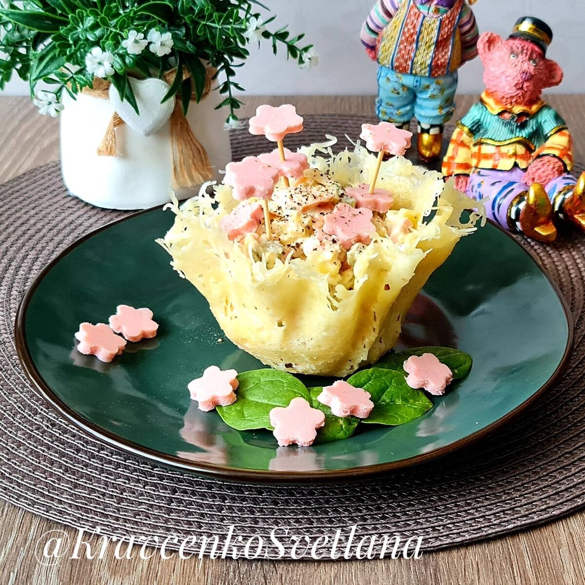 #новыйгод Сырные корзиночки готовятся очень легко и быстро. Такие корзиночки украсят ваш стол и придадут блюду праздничный вид. Ингредиенты: твердый сыр (пармезан или такого типа сыр), растительное масло для смазывания тарелки Способ приготовления: Тарелку смазать растительным маслом. Сыр равномерно распределить по поверхности. Ставим в микроволновку на 1 минуту на максимальную мощность. Сырный блинчик насаживаем на перевернутый стакан для придания формы - корзиночки. Слегка обжимаем донышко будущей корзиночки рукой. Отправляем в холодильник на 30 минут для фиксации формы. Сырные корзиночки можно начинить любым салатом, делать непосредственно перед подачей, чтобы корзинки не размокли. Приятного аппетита!