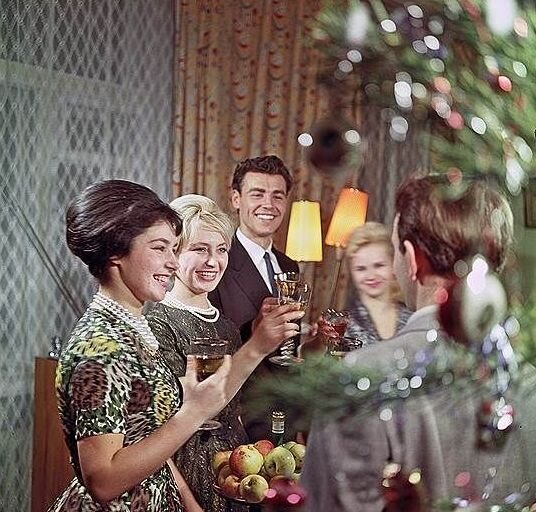 Трудно себе представить, но с середины 20-х годов Рождество и главные его атрибуты: елка с Дедом Морозом были под запретом. Праздник считался буржуазным и идеологически вредным. Традиция справлять Новый год в СССР появилась лишь в 1935 году, когда член ЦК ВКПб Павел Петрович Постышев предложил не отнимать у советских детей детство и вернуть ёлку. Постепенно Новый год стал самым любимым праздником в Советском Союзе и обрел множество традиций, многие из которых актуальны до сих пор. В этой статье предлагаю вспомнить их. Традиционное новогоднее застолье практически полностью перекочевало из советской эпохи в наше время. Новогодний стол в СССР, как и сейчас был не мыслим без салата оливье, рецепт которого заметно упростили. Салат названный в честь своего создателя, московского ресторатора Люсьена Оливье в середине 19 века имел в своем составе такие дефицитные компоненты как: рябчиков, говяжий язык, черную паюсную икру, а так же раков и омаров, но изобретательный народ заменил их на более п