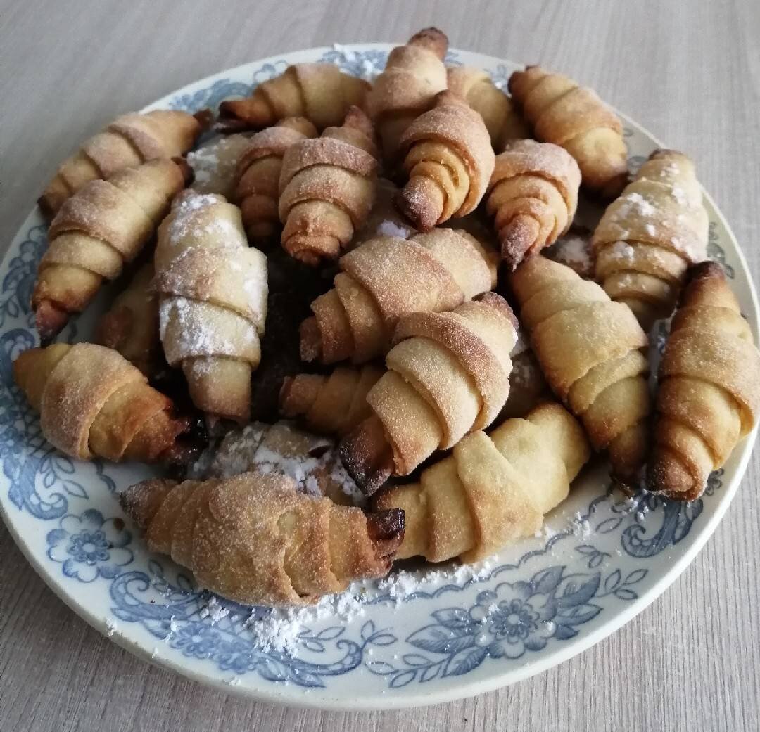 Ингредиенты: маргарина, яйцо, кефира, соды, сахара, Ванилин, Мука Способ приготовления: Яйцо взбить с сахаром, добавить кефир и растопленный маргарин. Всё перемешиваем, добавляем соду, ванилин и муку и замешиваем тесто. Раскатываем тесто в круг, разрезаем его на треугольники. Посыпаем их сахаром и скручиваем в рогалики. Ставим в духовку и выпекаем до зарумянивания.