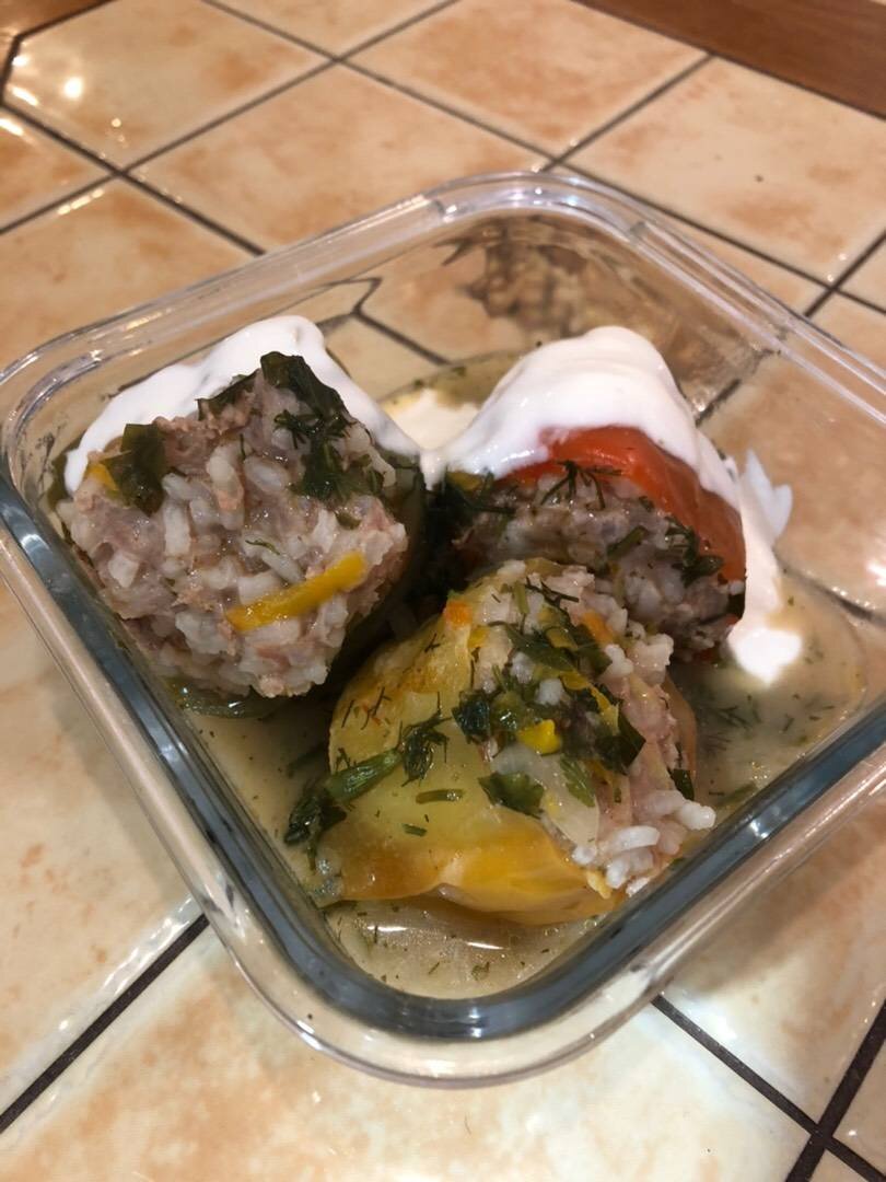 Легкое и вкусное блюдо 👍🏼 Я готовила из замороженных болгарских перчиков 🫑 Ингредиенты: фарша (у меня из индейки), болгарских перцев (я брала совсем маленькие), риса, луковицы, средняя морковь, ст л с горкой муки, ст л томатной пасты или кетчупа, Зелень петрушки и укропа, Соль, перец, Лавровый, Перец горошком, Растительное масло, Кипяток Способ приготовления: Лук нарезать кубиком, морковь натереть на крупной тёрке, приготовить зажарку, посолить, поперчить. PS Можно так же не обжаривать лук и морковь, а использовать сырыми. Фарш смешать с рисом, добавить половину зажарки, соль, перец. У перцем удалить плодоножку, начинить фаршем. Выложить в кастрюлю, добавить вторую половину зажарки, томатную пасту (или кетчуп), лавровый лист, перец горошком, соль, залить кипятком, что перцы были полностью покрыты. Муку смешать со стаканом воды, вылить в кастрюлю (как только перец закипит). Варить 30-45 минут в зависимости от размера перцев. В конце добавить рубленную зелень, подавать со сметаной. Пр