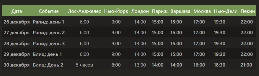 Есть у шахматистов такая традиция - собираться под Новый год, чтобы сыграть в быстрые шахматы. В этом году традицию решили не нарушать - 26 декабря в Варшаве начался чемпионат мира по рапиду. И зрители, и сами шахматисты обожают это мероприятие, поэтому список участников переполнен топовыми гроссмейстерами: Карлсен, Непомнящий, Карякин, Фирузджа, Каруана, Дуда, Вашье-Лаграв, Грищук, Гири, Артемьев, Мамедъяров и так далее. Чемпионат мира по быстрым шахматам даже транслируется в прямом эфире норвежского телевидения, где работают самые неповоротливые корреспонденты) Несмотря на большое количество претендентов, начиная с 2012 года титул чемпиона мира по рапиду покорялся всего шести счастливчикам. Как видим, Магнус Карлсен является действующим чемпионом и трехкратным обладателем титула. В этот раз норвежец тоже начал турнир с победы, хоть далась она очень непросто - только в глубоком эндшпиле его соперник Мераб Гагунашвили (черные фигуры) допустил грубейшую ошибку, непредусмотрительно встав