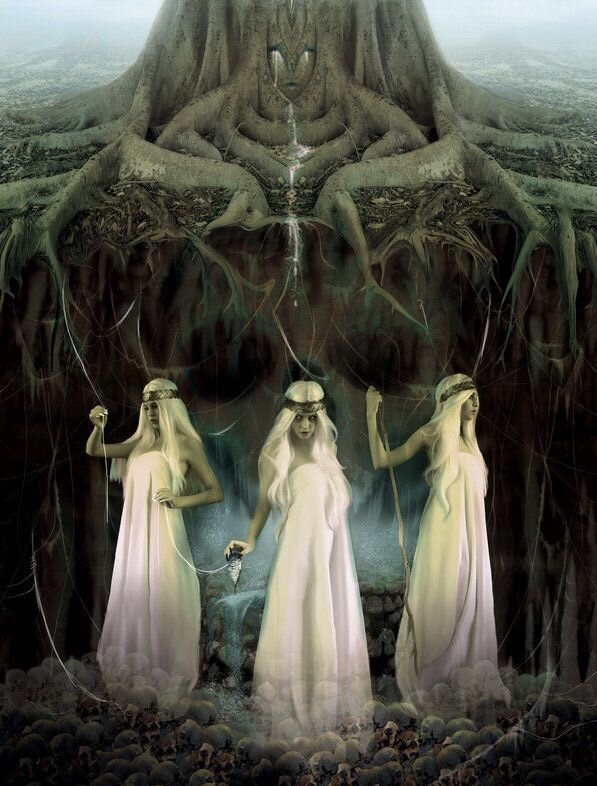 Норны - богини судьбы. Норн трое, и они символизируют: прошлое, настоящее и будущее. Их имена Урд, Верданди и Скульд. Они управляют судьбой всех живых существ, действуя согласно повелениям орлога – неизменного космического закона, которому подчиняется и сам Один. Урд – старшая из норн. Она управляет прошлым. Вторая норна – Верданди, она властна над настоящим. Скульд – младшая из трех и управляет будущим. Иногда она сопровождает валькирий и выбирает павших на поле боя. Магические орудия норн – нити и нож. Норны управляют судьбой людей, но не создают ее. Каждый человек в течение жизни сам создает свою судьбу или свой вирд. Так как все существующее зародилось в прошлом, старшая норна должна быть первой причиной, истоком бытия. Имя Урд также родственно слову «Эрда», что значит «земля», и это говорит о том, что она и есть богиня земли. Имя Верданди схоже с голландским глаголом worden и немецким warden, что значит «становиться». Третья норна, Скульд, приносит смерть. Она связана с колдовс
