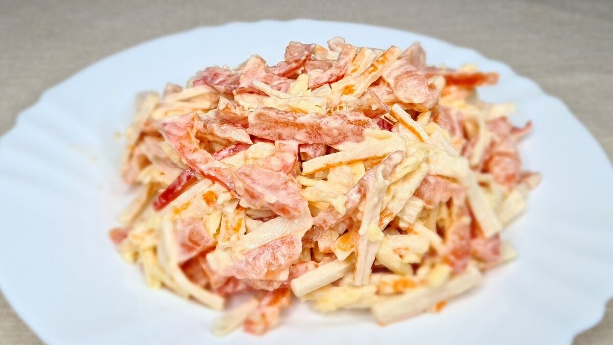 Салат КРАСНОЕ МОРЕ, этот салат пикантный и в тоже время легкий и очень вкусный. Свежие нотки сладкого перца в сочетании с сыром и чесноком делает его освежающим и необычным. Салат станет центром вашего стола и гости точно оценят его по достоинству. Ингредиенты: Крабовые палочки - 200 г. Перец сладкий - 1/2 шт. Свежие помидоры -3 шт. Твердый сыр - 70г. Чеснок - 1 зубчик Майонез - 2-3 ст.л. Такой салат очень простой в приготовлении и понравится всем.