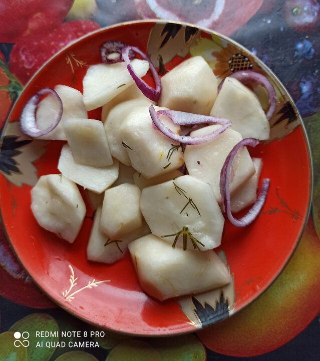 В последнее время выставлено несколько рецептов из топинамбура. По рекомендации одного из участников группы я его заквасила. Возиться с топинамбуром непросто, но получилось довольно вкусно. Клубни помыла щеточкой, почистила и порезала кружочками. Закипятила рассол, соли как на огурцы, остудила. Сахара не сыпала. Я делала в эмалированной кастрюле. Пересыпала ряды топинамбура чесноком, семенами укропа и резаным свежим укропом. В теплом месте продержала 3 дня. Переложила потом в банку и убрала в прохладное место. Сделала первый раз. Совершенно не знаю, как долго можно его сохранять квашеным. Я имею ввиду на зиму. Больше общения и рецептов - в группе "Жизнь с диабетом" в Facebook! Рецепт на странице в Facebook Автор рецепта - Татьяна Прищепа