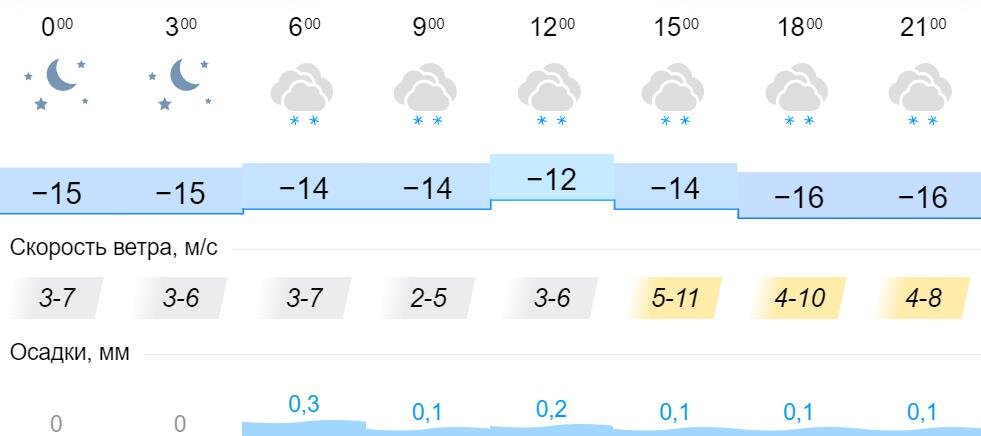 Синоптики рассказали, какая погода ожидает жителей Кировской области в понедельник, 27 декабря. Днем температура воздуха составит -14…-12°С. Утром и вечером – от -14°С до -16°С. Весь день ожидается облачная погода и осадки в виде снега. Скорость ветра в течение суток составит 2-11 м/с.