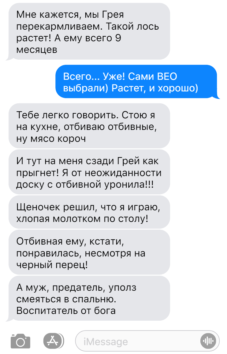Делать в доме дела без участия четверолапых - иногда просто невозможно. Это ты думаешь, что справишься сама. А они в этом не уверены! Сегодня для Вас подборка смешных переписок именно о том, как наши "хвостики" решили, что "человекам" нужна помощь по хозяйству. Приступим: Как не помочь хозяйке отбить мясо?! А как не попробовать?! Еще одна переписка о помощи кота... Как Вы поняли, Васька - кот, средне-нахальной наружности, а Пелагея - такса, приятной окружности. Еще одна переписка про хозяйственного кота. Что бы там ни считала его хозяйка... Конечно, хозяйка виновата! Пользуется чужой стиральной машиной! И еще одна переписка, теперь уже о двух незаменимых помощниках - добермане Дейзи и кошке Крейзи. Подобрали имечко - терпите) Ищите во всем положительные моменты и улыбайтесь каждый день! Читайте также: На улице мороз! Спасибо всем, кто помогает нам сейчас кормить бездомышей. Если можете - помогите копеечкой! Помощь голодным животным: Карта СБ 4276 4000 9548 8699 (оформлена на Светлану Г