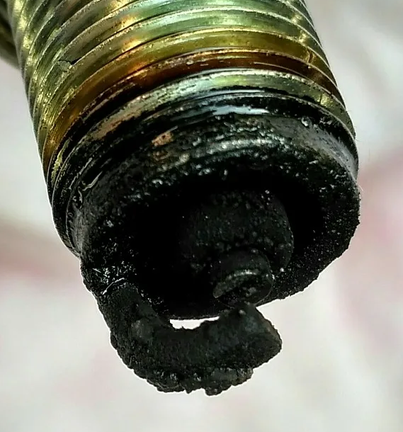 Самое неприятное что можно увидеть на свече, это означает что в камеру сгорания попадает масло.