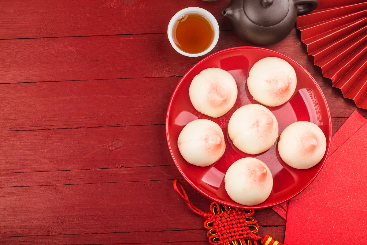 В современном мире простых смертных персики растут, увы, не круглый год, а чтобы иметь возможность желать друг другу долголетия в любой сезон, даже зимой, китайцы прибегли к концепту бао - дрожжевой булочки на пару.