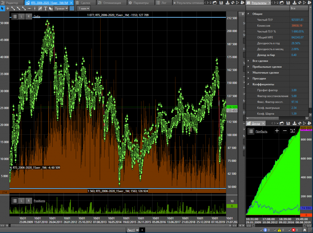 Бэктест был проведен на фьючерсе RI(1M) с 2009 года.