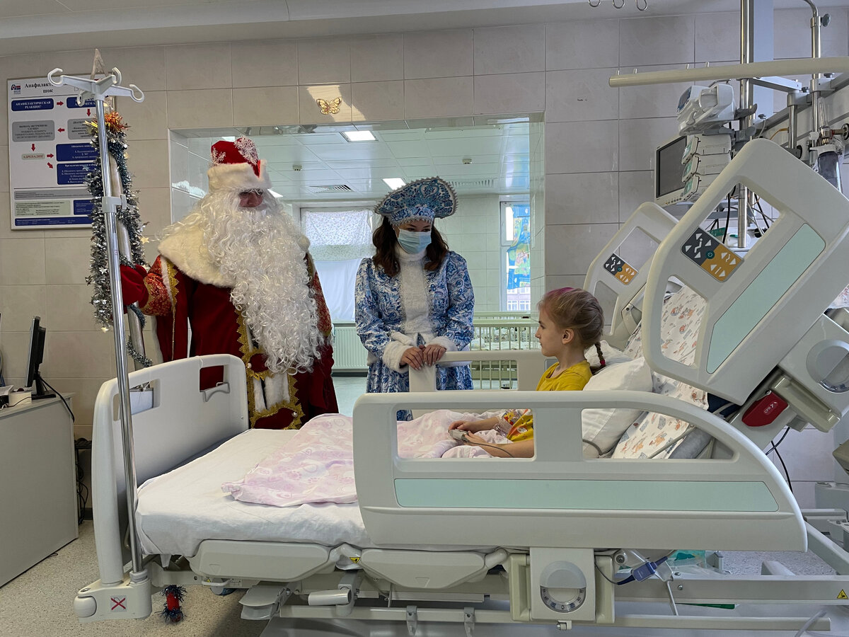 Сотрудники специального отряда быстрого реагирования в рамках предновогодней акции «Добрые дела с Росгвардией» приехали в гости к детям, которые находятся на лечении в реанимационном отделении Ивано-Матренинской детской клинической больницы города Иркутска и передали ребятишкам теплые одеяла. А сказочный Дед Мороз от Росгвардии устроил для малышей мини-праздник с шуточными поздравлениями. Маленькие пациенты больницы очень обрадовались подготовленному для них сюрпризу. «Накануне Нового года все ждут чудес, особенно дети. Но, к сожалению, бывает так, что некоторым приходится встречать Новый год в больнице. Чтобы хоть немного скрасить пребывание детей на лечении сотрудники СОБР Росгвардии приехали к ребятишкам и подарили праздничное настроение, необходимые подарки и пожелали скорейшего выздоровления», - сказала начальник пресс-службы Управления Росгвардии по Иркутской области лейтенант полиции Светлана Карань. Росгвардейцы выразили слова благодарности медицинскому персоналу больницы за сп